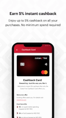 Don jin daɗin duk waɗannan fa'idodi na Dubai First, dole ne ku kasance abokin cinikin Dubai First da ke da katin Dubai First. Idan ba ku da katin Dubai First, yanzu ne lokacin da za ku nemi naku don fara amfani da wannan ƙwarewar banki ta musamman. Lura: Idan kuna biya mafi ƙarancin adadi na biyan kuɗi kawai a kowane lokaci, za ku biya kuɗin ruwa, riba, ko kuɗaɗe fiye da yadda ake tsammani, kuma zai ɗauki tsawon lokaci don biyan bashin da ya rage.