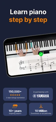 Ko kai ɗan koyo ne wanda ke son fara tafiyarsa a duniyar piano, ko kuma mai ƙwarewa da ke neman inganta fasaharsa, flowkey yana da abin da kake buƙata. Ga masu farawa, flowkey yana jagorantarka mataki-mataki kan yadda ake karanta nassosin waƙa, kewaya faifan piano, da buga waƙoƙi da hannaye biyu. Kuma ga waɗanda suka riga sun saba da piano, flowkey yana ba da damar goge fasaharka da zurfafan darussa kan ma'auni, 'chords', da kuma 'improvisation'. Tare da flowkey, abin da kake buƙata don koyon piano da kunna waƙoƙin da kake so shine wayarka, kwamfutar hannu, ko kwamfutar tafi-da-gidanka, da kuma kayan kiɗa na piano ko keyboard. flowkey yana aiki da kyau da piano na gargajiya, piano na zamani, da kuma keyboards.