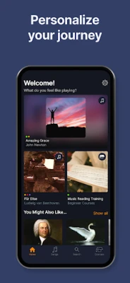 Bude duniyar kiɗan piano mai ban sha'awa tare da flowkey, abokin koyon ka na musamman. Daga waƙoƙin gargajiya masu daɗi zuwa na zamani, pop, waƙoƙin fina-finai da talabijin, da ma fiye da haka, flowkey yana ba ka damar zaɓar daga dubban waƙoƙi masu tsari da kyau. Ko da matakin gwanintarka nawa ne, za ka sami sabbin waƙoƙin da za ka koya da waɗanda za ka morewa, tare da waƙoƙi a matakai huɗu na wahala daban-daban. flowkey yana tabbatar da cewa akwai koyaushe wani abu sabo da mai ƙalubalantar sha'awa a gare ka.